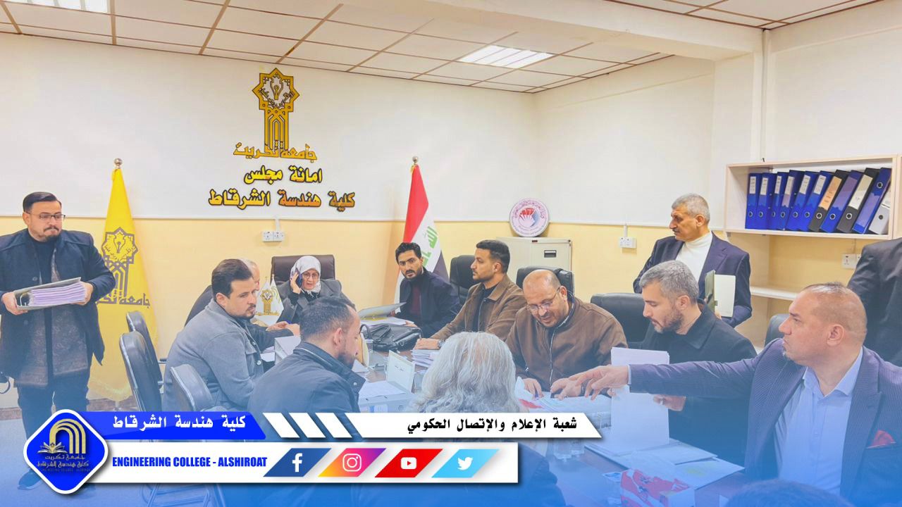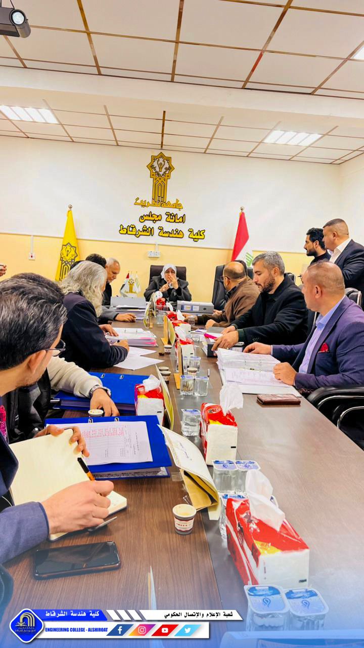انسجاماً مع توجهات وزارة التعليم العالي والبحث العلمي في ترسيخ منظومة الجودة الشاملة وتحقيق التميّز الأكاديمي والمؤسسي، استقبلت عمادة كلية هندسة الشرقاط، يوم الأحد الموافق 18/1/2026، لجنة التدقيق الداخلي الخاصة بالاعتماد المؤسسي، وذلك في إطار الاستعدادات الجارية لاستقبال اللجنة المركزية للاعتماد المؤسسي.