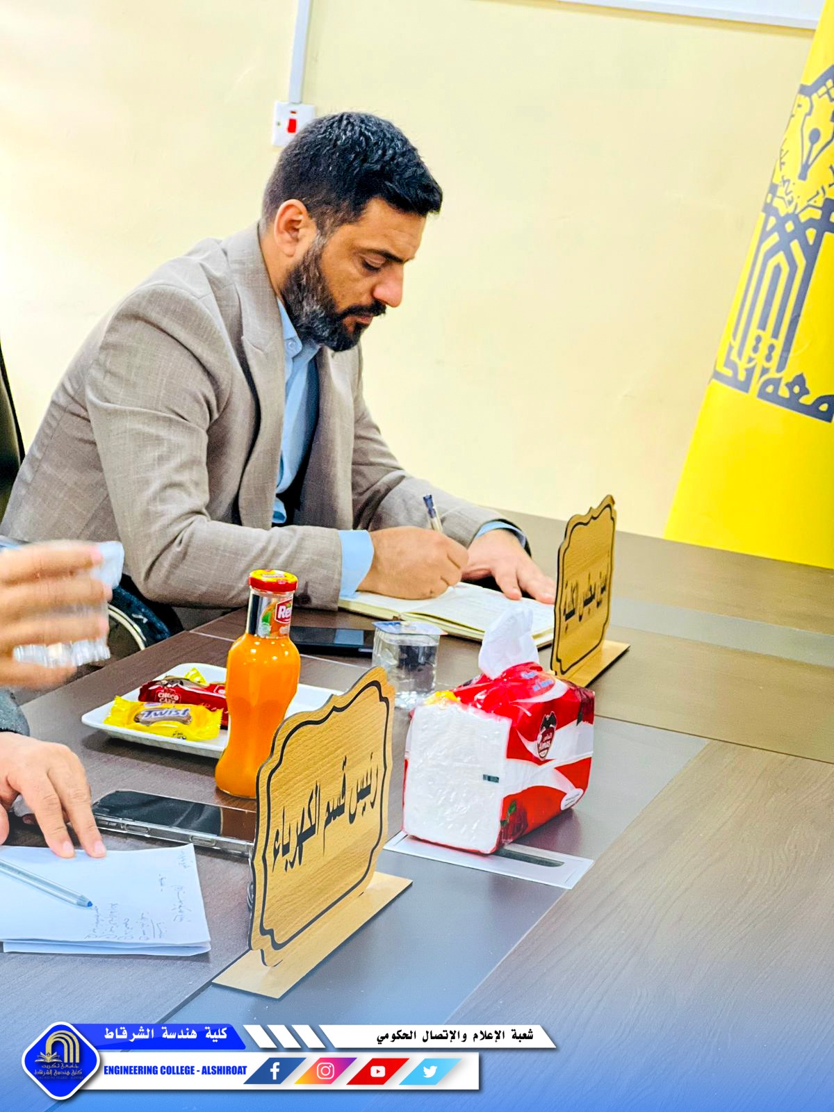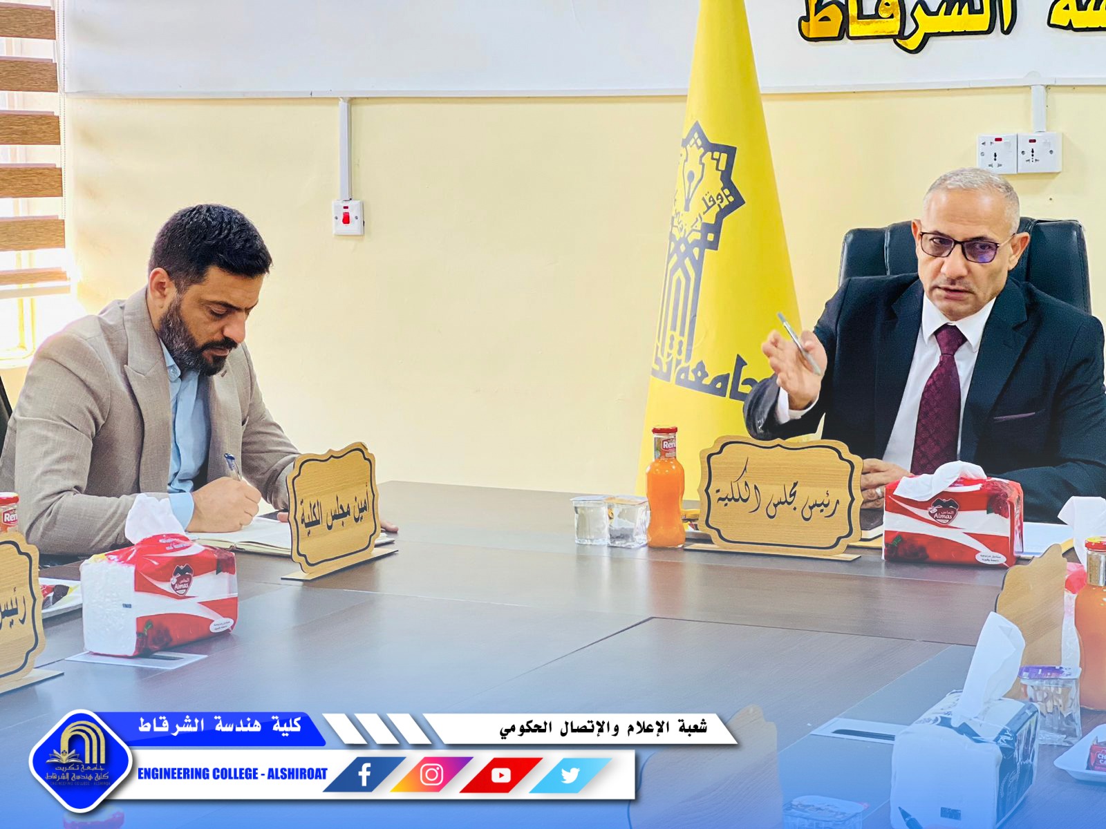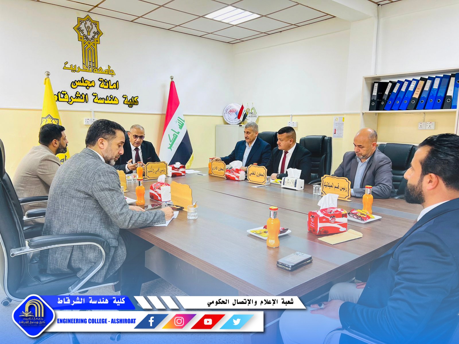 عقد مجلس كلية هندسة الشرقاط جلسته السابعة برئاسة السيد عميد الكلية، برئاسة السيد عميد الكلية الاستاذ الدكتور خميس خلف حسن وبحضور السادة أعضاء المجلس وممثلي الطلبة، لمناقشة عدد من القضايا الأكاديمية والإدارية التي تسهم في تطوير مسيرة الكلية وتعزيز جودة خدماتها التعليمية.
